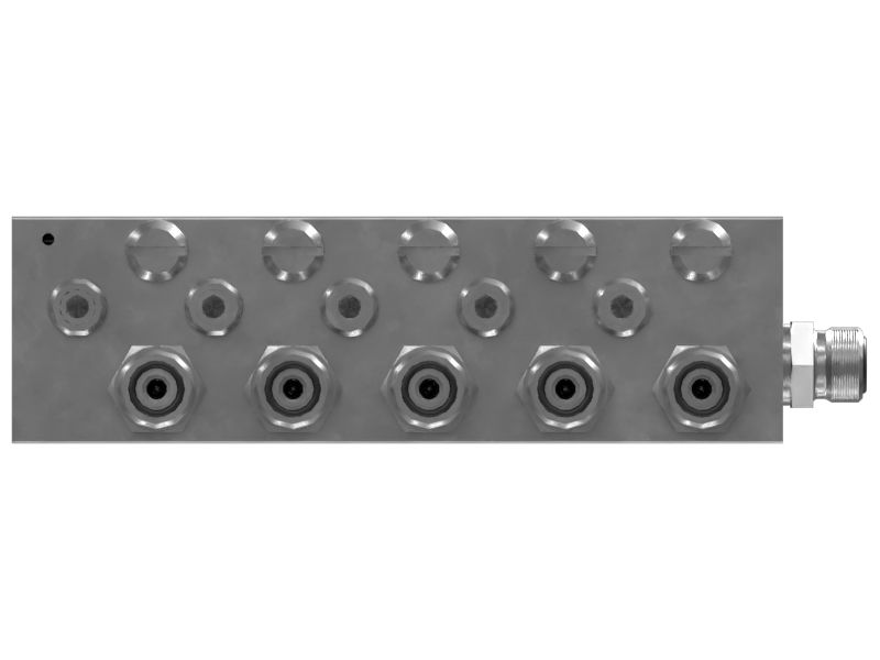 حاقن صمام مقسم التشحيم التدريجي من Cat® لخطوط التشحيم لتوفير تشحيم دقيق في إطار الذراع الطرفية